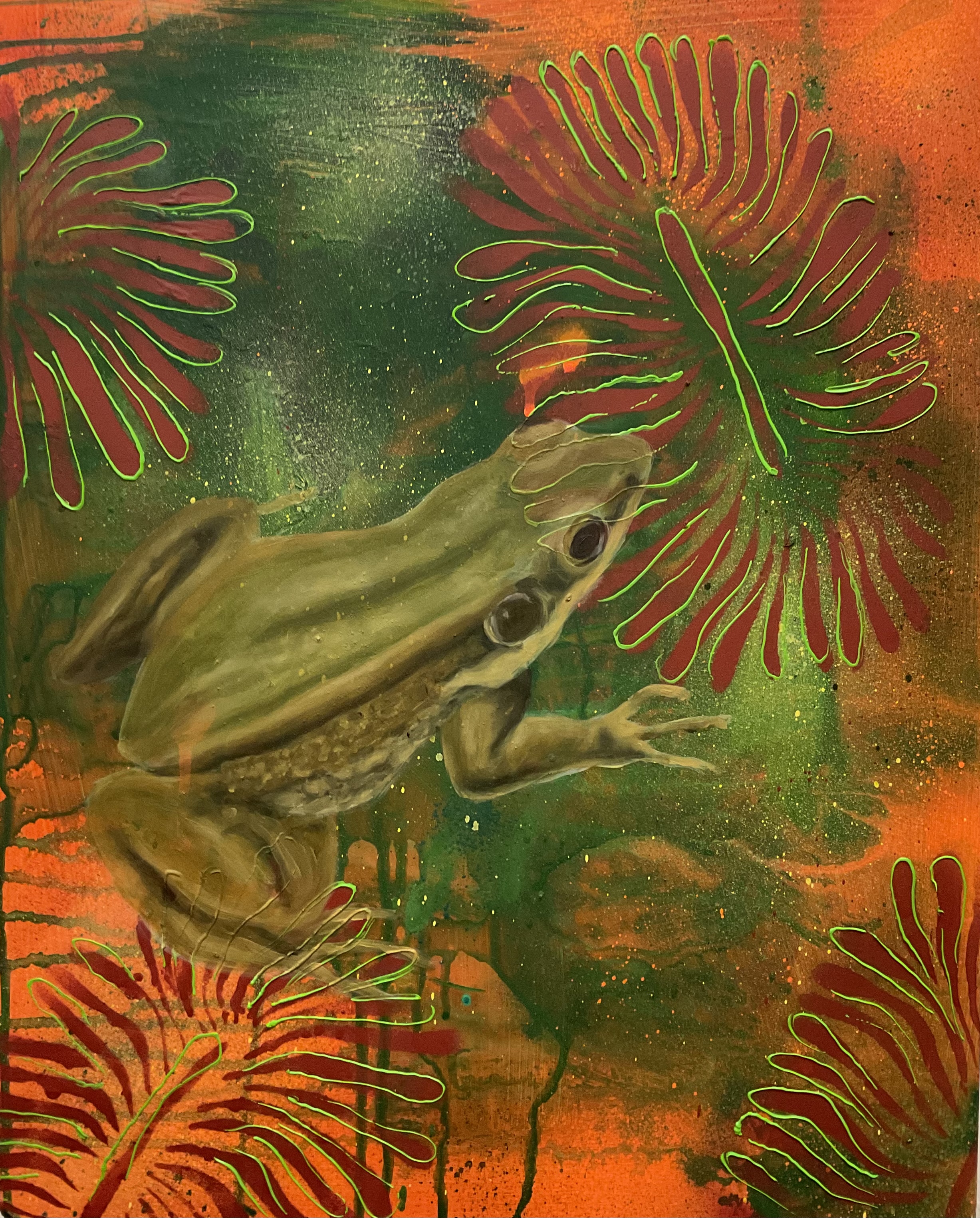 Frog at my door step, 2022, Oil and acrylic on board, 40 x 30 cm