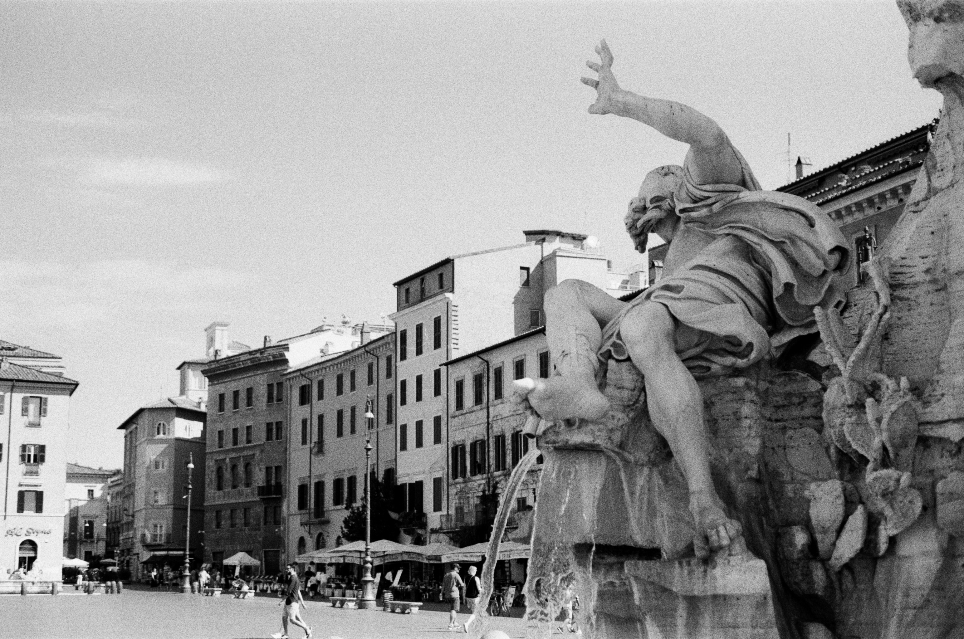 Freed earlier than expected and after locating an art supply store, I end up in Piazza Navona, drawn to the feet of the falling figures of Bernini’s Fontana dei Quattro Fiumi. Marble giants toppling as they keep the obelisk from the waters below. There is a street busker in the corner of the square, seated crossed legged he hovers a meter off the floor. His left hand grips a staff, which upholds the device concealed underneath his clothing, and with it the illusion of levitation. The piazza is quiet, the city fresh out of lockdown restrictions, but the few tourists and locals seem familiar with the trick.