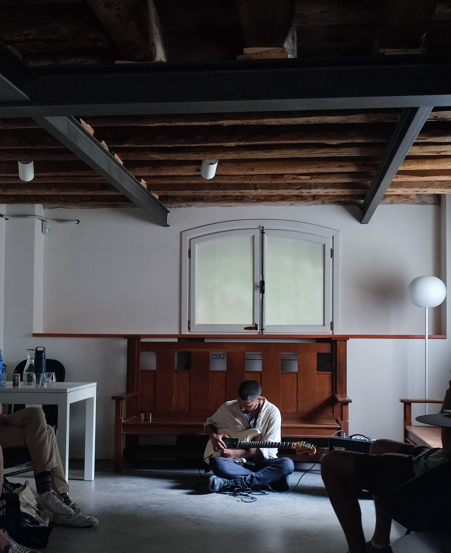 On my last day in Venice, I performed a sonic intervention at the British Pavilion – a live sound piece called Azadi and Other Love Songs. The performance was sort of a response to John Akomfrah’s work, looking at how bootlegs, remixes, and repetitions can carry radical histories into the present. I held my android phone speaker against the magnetic pickups of an electric guitar, and we listened through the amplifier as songs, field recordings and memories disappeared into each other.